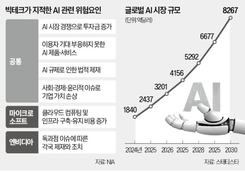 AI에 앞장서 투자하는 글로벌 빅테크도 상황은 비슷하다. NIA는 "미국 주요 빅테크 기업이 증권거래위원회(SEC)에 제출한 재무신고서 내 위험 요인으로 AI 내용이 다수 포함됐다"고 설명했다.