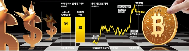 다만 트럼프 2기 행정부가 보호무역주의를 강화하면 달러의 국제적 사용이 줄어들면서 비트코인 거래 등 탈달러 움직임이 활발해질 것이란 전망도 제기된다. 스티븐 블리츠 TS롬바드 수석이코노미스트는 "트럼프 당선인의 관세 정책이 달러 힘을 약화할 것"이라고 내다봤다.