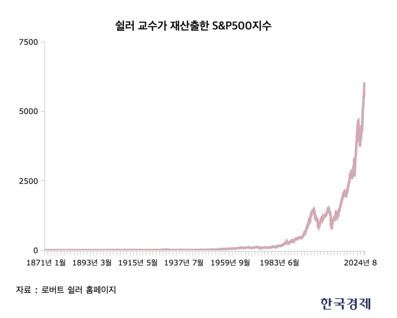 1957년 이전의 S&P500지수를 산출한 유명한 연구가 있기는 합니다. 노벨경제학상을 받은 로버트 쉴러 미국 예일대 경제학과 교수가 이 데이터를 산출하고 있습니다. 이 데이터는 쉴러 교수 홈페이지에서 누구나 다운로드할 수 있습니다.