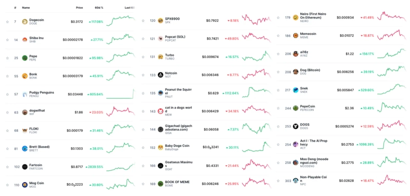한편 올해 투자자들은 밈코인·인공지능 코인에 뜨거운 관심을 보였다. 가상자산 데이터 플랫폼 코인게코는 지난 24일 보고서에서 "올해 투자자들은 밈코인, 인공지능(AI) 관련 코인, 실물연계자산(RWA) 관련 코인에 집중적인 관심을 보였다"면서 "주요 밈코인 25개는 글로벌 투자자의 관심 점유율 30.67%를 차지하며 관심을 한몸에 받았다"고 분석했다. 특히 솔라나 계열 밈코인, 고양이 테마 밈코인이 인기를 끈 것으로 나타났다. AI 코인은 전체 투자자의 관심 비율 중 15.67%를 차지했다.