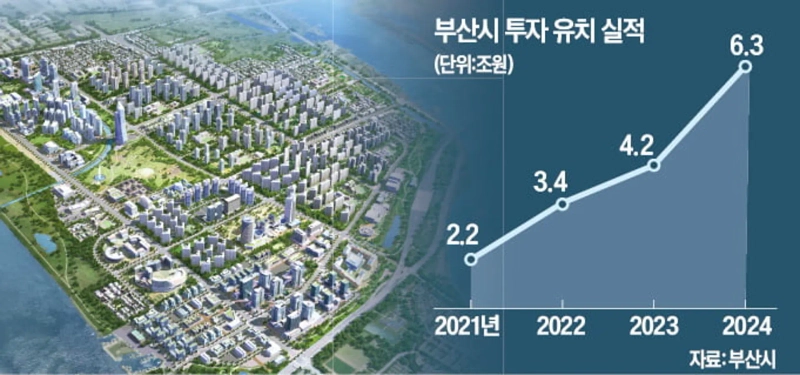 지난해 부산시가 역대 최대 규모인 6조원대 기업 투자를 유치한 것으로 나타났다. 투자 유치 액수가 대폭 늘어나 고부가가치 산업 육성의 밑거름을 마련했다는 평가가 나온다. 부산시는 미래 모빌리티 기회발전특구 188만㎡(57만 평) 지정에 이어 278만㎡(84만 평) 규모의 경제자유구역 확대를 추진해 기업이 투자하고 정착하는 선순환을 이룬다는 계획이다.