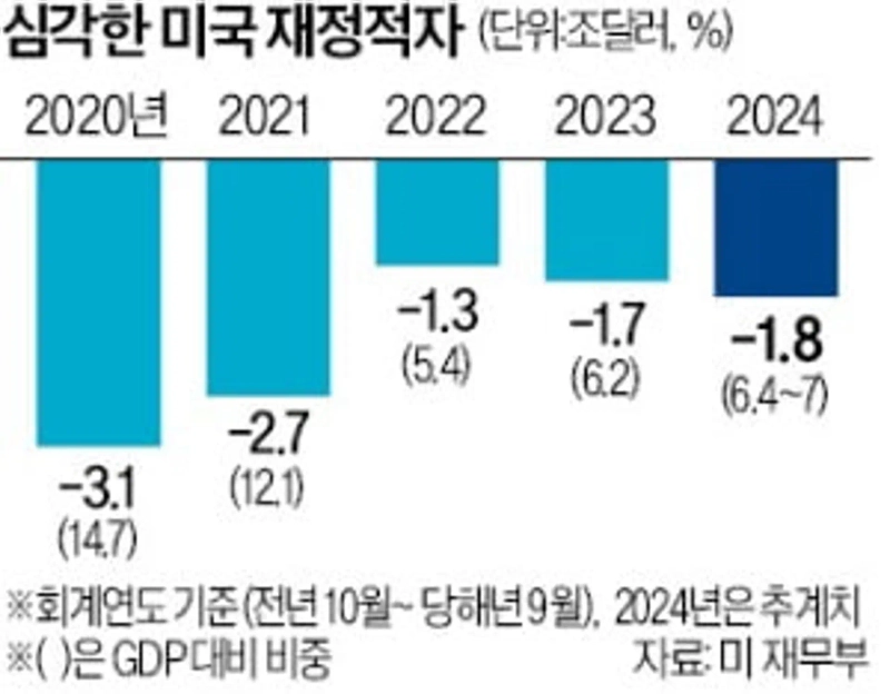 미국 샌프란시스코에서 3~5일(현지시간) 열린 '2025 미국경제학회(AEA)' 연례총회에서 노벨경제학상 수상자인 데이비드 카드 UC버클리대 경제학과 교수는 미국의 재정 적자와 관련해 "큰 문제가 있을 것"이라고 경고했다. 그는 "(트럼프 당선인이 취임하면) 세금 인하가 있을 텐데 문제는 (트럼프 2기 행정부가) 재정적자 증가를 허용할지 여부"라고 분석했다. 재정적자가 늘어나면 국채 발행 물량 증가로 채권 시장에 충격을 줄 수 있다는 것이다.