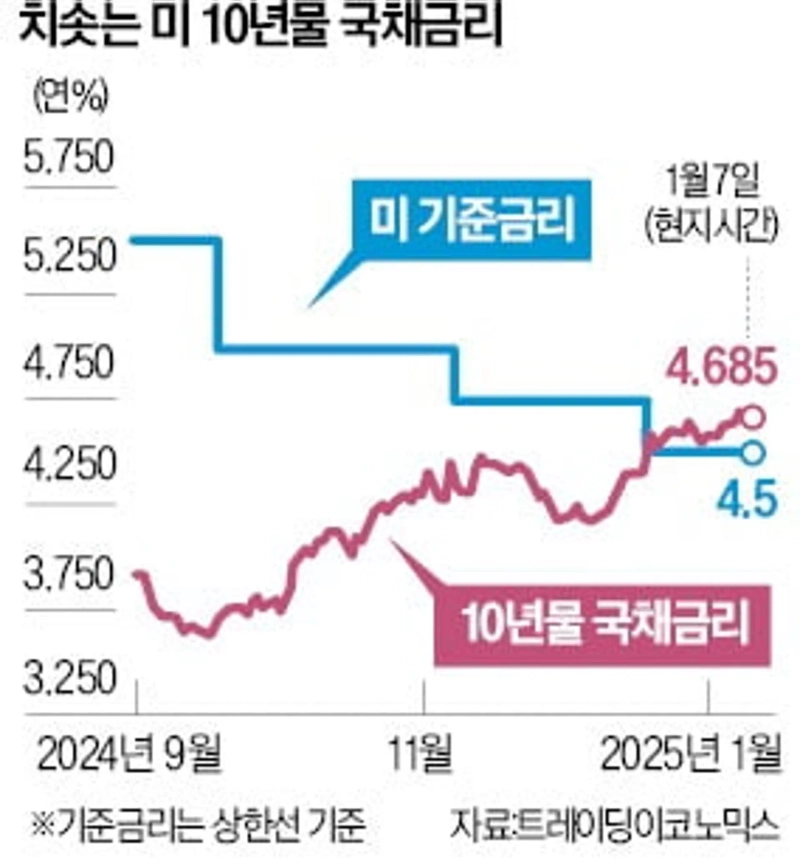 도널드 트럼프 미국 대통령 당선인 취임을 앞두고 미국 국채 금리가 급등하고 있다.