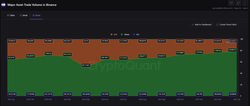 실제 그가 공유한 데이터에 따르면 바이낸스의 알트코인 점유율은 지난 5월 50.8%에 불과했으나, 이후 8월 66.77%로 급등하더니 현재 1월 기준 77.83%를 기록 중이다.