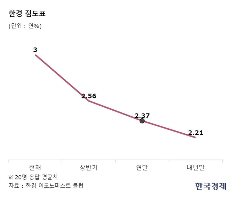 - 올해 총 2~3회 금리 인하를 예상하며 전문가들은 평균 금리를 연 2.56%까지 낮출 것으로 본다고 전했다.