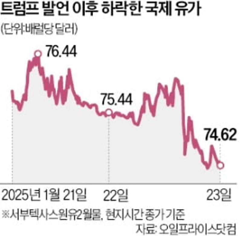 원유 시장은 곧바로 반응했다. 이날 서부텍사스원유(WTI) 2월물은 1.09% 하락한 배럴당 74.62달러에 거래를 마쳤다.