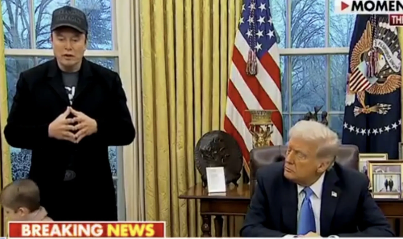 이날 머스크 CEO는 백악관 오벌오피스를 찾아 트럼프 대통령의 행정명령 서명식에 동석했다. 검은색 마가(MAGA) 모자를 쓰고 아들을 목마에 태운 채 등장해 '실세'임을 입증했다. 이후 대통령과 함께 30여분간 기자들과 질의응답을 진행했다.