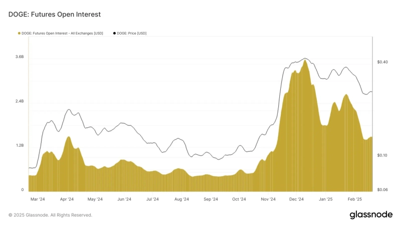 19일(현지시각) 글래스노드는 X를 통해 "밈코인 미결제약정은 최근 크게 하락했다"라며 "도지코인(DOGE)의 OI는 작년 12월9일 기준 35억8000만 달러에서 현재 14억9000만 달러를 기록하며, 58% 가량 하락했다"라고 밝혔다.
