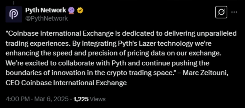피스네트워크(PYTH)가 6일(현지시간) 공식 X(구 트위터)를 통해 코인베이스와 파트너십을 체결했다고 발표했다.