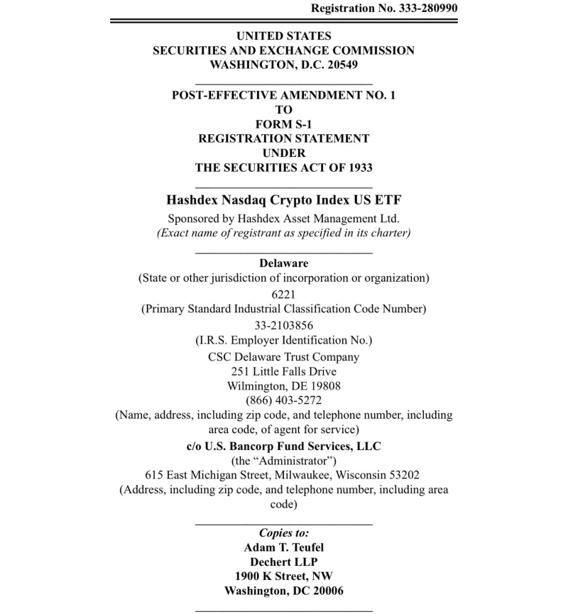 해시덱스가 '헤시덱스 나스닥 크립토 인덱스 US ETF' 수정안에 라이트코인(LTC)을 추가한 것으로 나타났다.