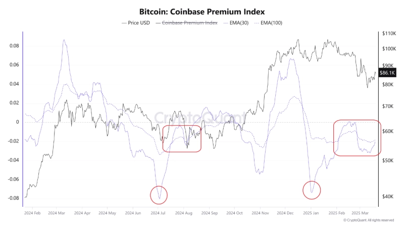 우민규 크립토퀀트 기고자는 20일 "최근 코인베이스 프리미엄 지수의 30일 지수이동평균(EMA)이 다시 100일 EMA를 상향돌파하려는 움직임을 보이고 있다"고 밝혔다. 그는 "이는 미 기관과 고래(대형 투자자)들이 적극적으로 비트코인을 매집하고 있다는 강력한 신호가 될 수 있다"며 "과거에도 유사한 크로스오버가 발생한 후 비트코인 가격이 급등하는 경우가 많았다"고 했다.