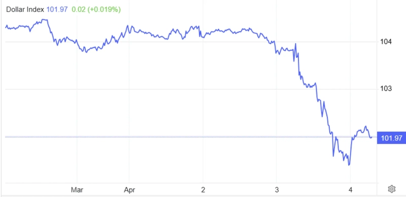 통상 안전자산을 찾을 때는 미국 달러화로 달려가게 마련이지만, 이번엔 충격의 진원지가 미국이다 보니 미국 달러화 가치가 되레 떨어졌습니다. 오늘 달러 인덱스는 1.67% 하락했는데요. 2022년 이후 가장 큰 일일 하락폭을 기록했습니다.