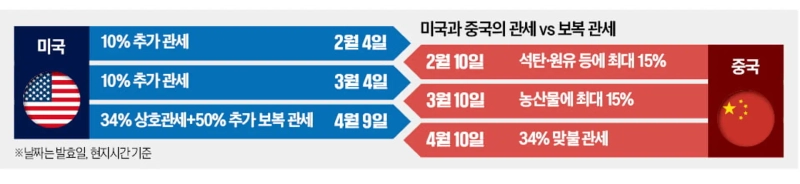 미국과 중국의 관세전쟁이 환율전쟁으로 확전하고 있다. 중국산 수입품에 104% 추가 관세를 부과한 미국에 중국이 위안화 가치 절하로 맞서면서다. 도널드 트럼프 미국 대통령이 "중국의 전화를 기다리고 있다"며 중국에 협상에 나설 것을 요구했지만 중국은 "미국의 태도 변화가 필요하다"며 장기전 태세에 들어갔다.