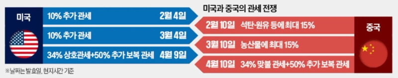 - 중국은 미국의 추가 관세 조치에 맞서 위안화 평가 절하와 84%의 추가 관세를 부과하며 강하게 대응했다고 전했다.