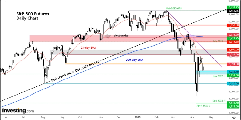 어제 하락세 이후, 미국 지수 선물은 유럽과 아시아 증시와 함께 반등하고 있다. 하지만 이번 주 대부분의 서구 시장이 이스터 연휴를 앞두고 있는 만큼, 이 상승세가 유지될 수 있을지는 여전히 불확실하다.