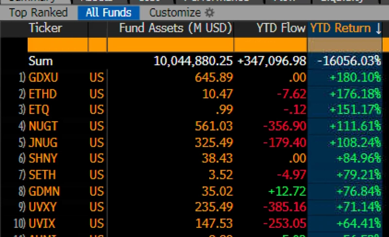 - 이더리움 2배 숏 ETF가 올해 미국 ETF 수익률에서 2위와 3위를 차지했다고 전했다.