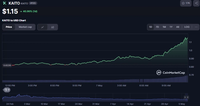 웹3 서치 플랫폼 카이토(KAITO)가 장중 급등세를 보이고 있다.