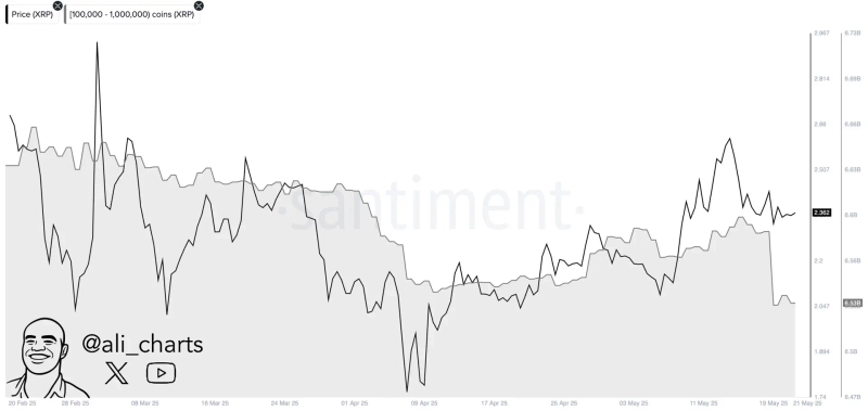 21일(현지시각) 알리 마르티네즈 가상자산 분석가는 X(옛 트위터)를 통해 "샌티멘트 자료에 따르면 지난 72시간 동안 고래들은 6000만 개 이상의 엑스알피를 매도했다"라고 밝혔다. 이는 현재 엑스알피 시세 기준 1억4243만 달러(약 1955억원) 규모다.