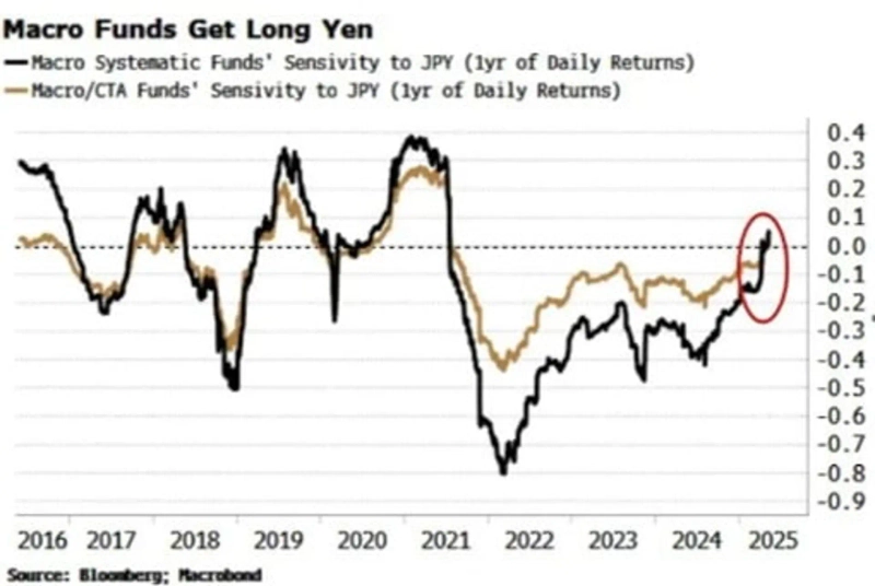 실제로 시장에선 엔화 강세와 일본 국채 금리 추가 상승에 베팅하는 자금이 늘어나고 있습니다. 사이먼 화이트 블룸버그 애널리스트에 따르면 매크로 기반 펀드들의 수익률과 엔화 간 감응도가 4년 만에 처음으로 플러스 전환했습니다. 매크로 펀드들이 엔화 강세 베팅으로 돌아서면서, 엔화가 오를 수록 매크로 펀드 수익률도 좋아지고 있다는 뜻입니다.