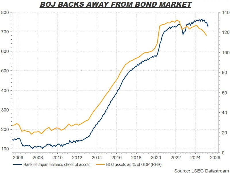 일본의 30년물 국채 수익률은 이제 3% 안팎까지 올라와 있습니다. 사상 최고치입니다. 올 들어 상승폭도 가장 가파릅니다. 지난 수십년 간 일본은행(BOJ)이 국채를 무제한 매입하며 억눌러왔던 금리가 고삐가 풀려버린 듯한 모습입니다.