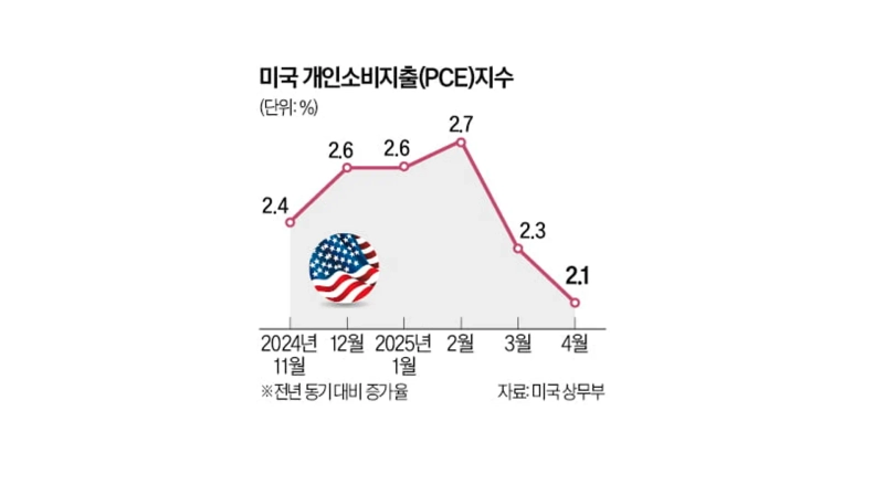 - 미국 4월 PCE 가격지수가 2.1% 상승하며 7개월 만에 최저치를 기록했다고 밝혔습니다.
