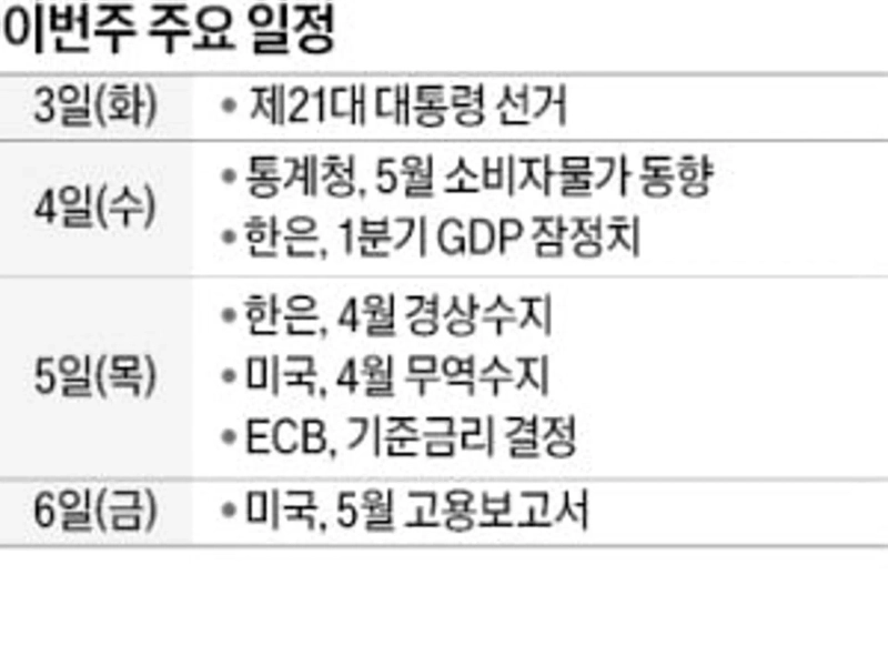 3일 대통령 선거를 기점으로 한국 경제의 진로가 크게 바뀌는 한 주가 될 전망이다. 새 정부가 통상 환경 악화와 내수시장 부진을 헤쳐 나가기 위해 어떤 경제정책을 내놓을지 주목된다.