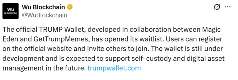 트럼프 월렛은 대체불가능토큰(NFT) 마켓플레이스 매직에덴(ME)과 밈코인 '오피셜 트럼프(TRUMP)' 구매 플랫폼 겟 트럼프 밈(GetTrumpMeme)이 공동 개발 중이다.