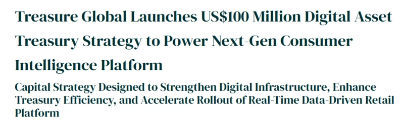 - 트레저글로벌이 1억 달러 규모의 가상자산 트레저리 전략을 발표했다고 밝혔다.