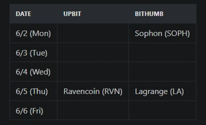 국내 주요 거래소들은 지난주에도 활발한 움직임을 이어갔다. 업비트는 레이븐코인(Ravencoin, RVN)을, 빗썸은 소폰(Sophon, SOPH)과 라그랑주(Lagrange, LA)를 상장하면서 각각의 전략을 드러냈다. 특히 빗썸은 내러티브 기반 토큰에 대한 공격적인 지원을 이어가고 있는 모습이다.