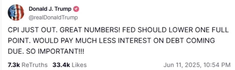 어떻든 예상했던 것과 다른 데이터가 나오자 즉각 금리 인하 압박이 커지고 있습니다.트럼프 대통령은 곧바로 Fed가 금리를 1퍼센트포인트 떨어뜨려야 한다는 글을 게시했습니다. 그렇게 하면 각 경제주체들이 내야 될 이자가 줄어들 것이라는 논리를 폈습니다.