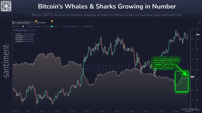 10개의 비트코인(BTC) 이상을 보유한 지갑 수가 622개 증가한 것으로 나타났다.