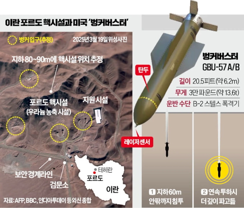 - 포르도 핵 시설을 제거하려면 미국의 벙커버스터 GBU-57 같은 고성능 무기가 필요하다고 분석이 나왔다.