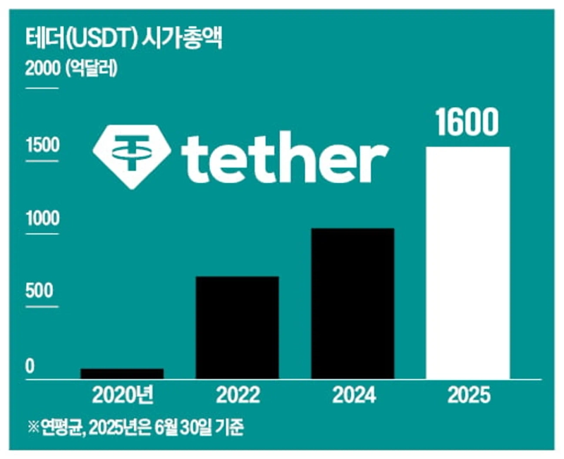 대표적인 달러 연동 스테이블코인인 테더(USDT)의 연평균 시가총액은 2015년 약 45만달러에서 2020년 73억달러로 급증했다. 2025년 6월 30일 기준으론 약 1600억달러에 육박했다. 스테이블코인 USDC 발행사 서클은 지난달 업계 최초로 미 뉴욕거래소에 상장했다. 스테이블코인은 크게 세 종류로 나뉜다. △테더나 서클같이 달러 가치에 연동 △비트코인 등 암호화폐에 연동 △수학적 알고리즘 기반 자체 가치 창출이다.
