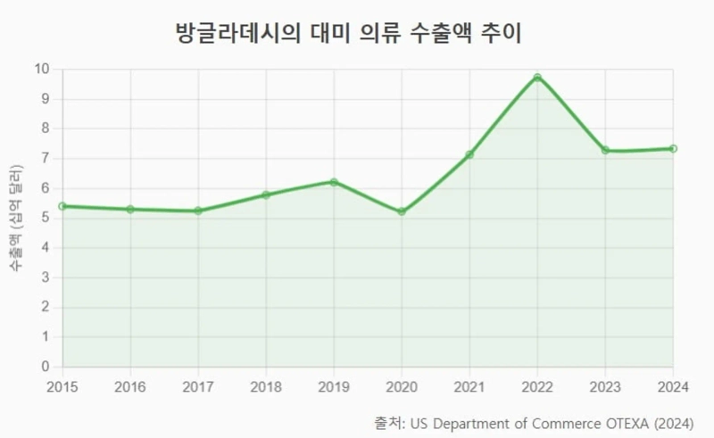 방글라데시는 한국 SPA 브랜드와 의류 OEM 업체들의 주요 생산기지 중 하나다. 미국 수출용 물량에 35% 관세가 붙으면 주문 감소나 단가 인하 압박이 불가피하다는 분석이 나온다. 방글라데시에 진출한 한국 봉제공장들의 가동률