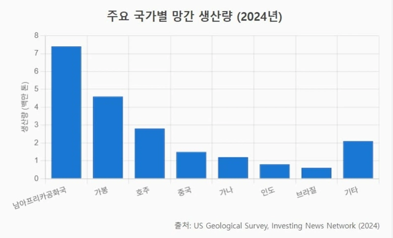 미국은 남아프리카공화국 30% 추가 관세를 부과했다. 이에 따라 망간, 백금, 팔라듐 등 전기차 배터리와 수소차 등의 핵심 광물 공급망을 흔들 수 있다는 우려가 나온다. 남아공은 전 세계 망간 생산량의 약 36%를 차지하는 최대 생산국이다. 세계 백금 생산의 70% 정도를 공급하기도 한다.