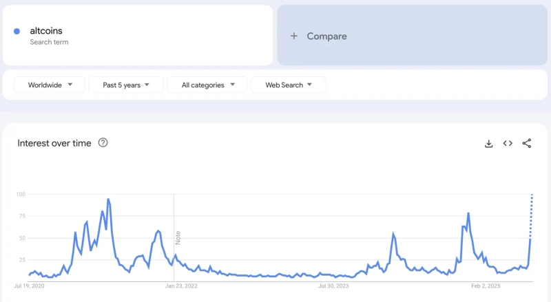 - '알트코인'의 구글 검색량이 4년 만에 최대치를 기록했다고 전했다.