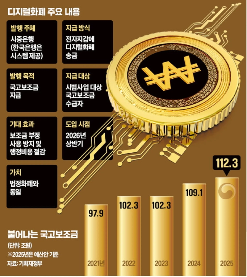 내년부터 일부 국고보조금이 현금·바우처 대신 디지털화폐(예금 토큰)로 지급된다. 블록체인 기술을 활용한 디지털화폐로 보조금이 엉뚱한 곳에 쓰이는 것을 막고 행정·금융비용을 절감하려는 취지다. 공공부문에 디지털화폐를 도입하는 세계 최초 사례라는 점에서 주목받는다.