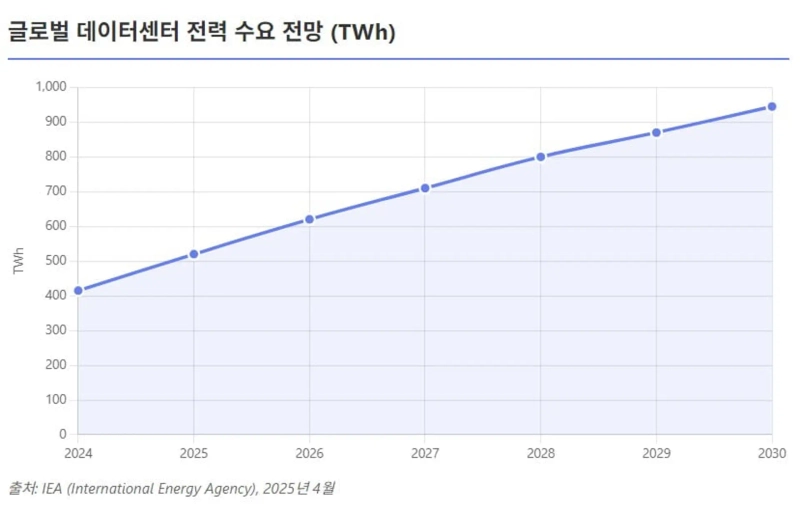 27일 로이터통신에 따르면 국제에너지기구(IEA)는 지난 4월 "향후 5년간 데이터센터 전력 수요가 두 배로 늘어 2030년에는 약 945TWh로 일본 전체 소비량을 넘어서게 될 것"이라 전망했다. 늘어날 전력 수요의 핵심 동인은 인공지능(AI) 확산이다. AI 모델 학습과 서비스에 막대한 전력이 필요하기 때문이다.