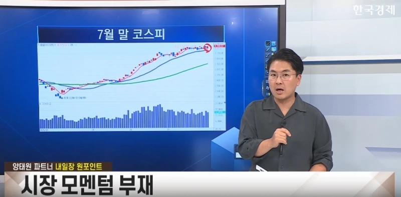 한국경제TV 와우넷에서 활동 중인 양태원 전문가(홀리인베스트먼트 대표)는 지난 8월 28일(목) 방송된 '진짜 주식 2부'에서 8월 국내 증시 흐름을 총평하며, 9월 장세에 대한 전략적 관점을 제시했다.