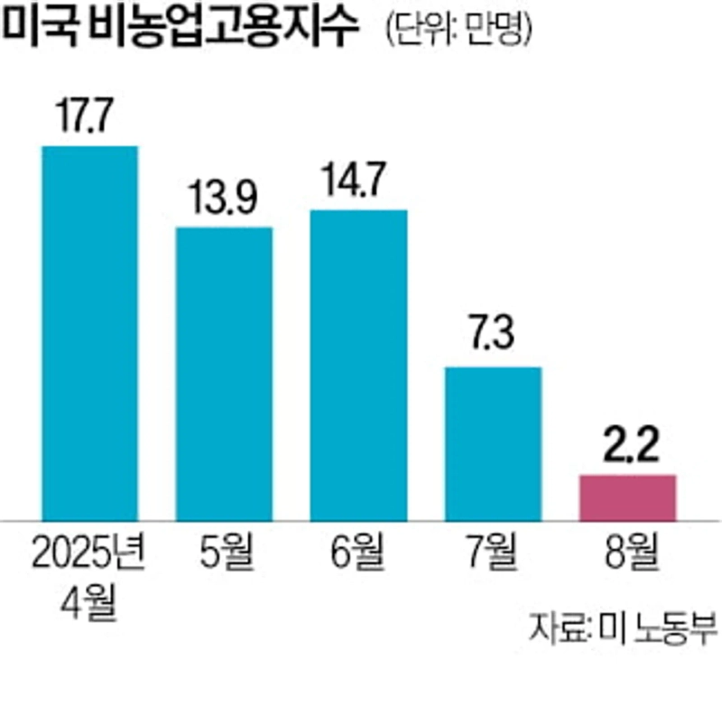 - 이러한 고용 악화 여파로 미국 중앙은행(Fed)의 이달 기준금리 인하가 기정사실화되는 분위기라고 밝혔다.
