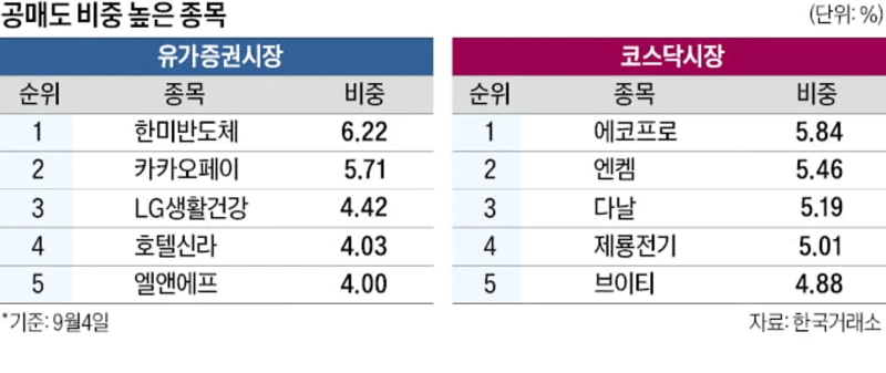 - 주가 급등 종목의 밸류에이션 부담과 시장의 불확실성이 공매도 증가의 배경이라고 전했다.