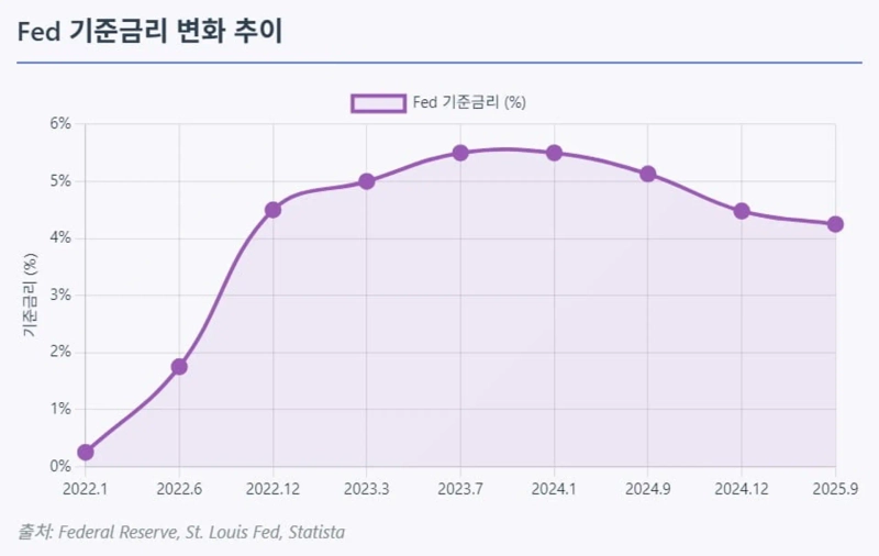 19일 로이터통신에 따르면 미국 중앙은행(Fed)은 17일 열린 회의에서 기준금리를 0.25%포인트 내려 기준 금리 수준을 4.00~4.25%로 조정했다. Fed는 "최근 경제 성장 속도가 상반기에 둔화된 것으로 나타났고 일자리 상황도 점점 나빠질 위험이 있다"고 설명했다.