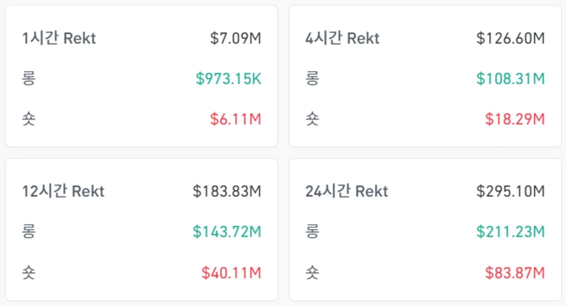 지난 24시간 동안 가상자산(암호화폐) 무기한 선물 시장의 포지션 청산 규모가 2억9510만 달러를 기록한 것으로 나타났다.