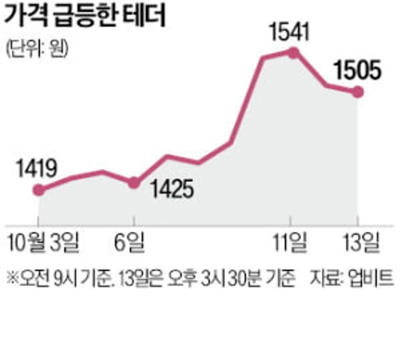 13일 암호화폐거래소 업비트에 따르면 테더 가격은 이날 오후 3시30분 달러당 1505원에 거래됐다. 서클의 USD코인은 1506원을 기록했다. 같은 시각 원·달러 환율은 1425원80전에 주간거래를 마쳤다. 스테이블코인은 달러 가치와 1 대 1로 연동돼 있어 국내 거래가격이 원·달러 환율을 따라가는 것이 일반적이다. 평소에는 원·달러 환율과 스테이블코인 간 가격 차이가 10~20원 수준을 보인다.