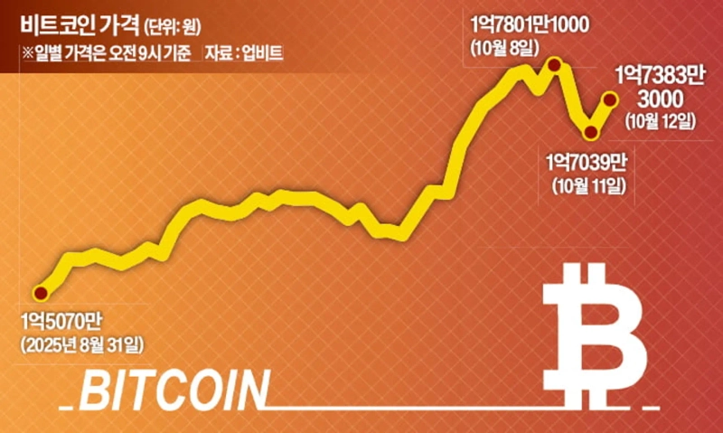 14일 국내 암호화폐거래소 업비트에 따르면 비트코인 가격은 지난 2일 사상 처음으로 1억7000만원을 넘어섰다. 그 후에도 거듭 최고가를 경신하며 8일 한 때 1억7900만원대까지 치솟았다. 해외에서도 이달 들어 12만달러 이상을 유지 중이다.
