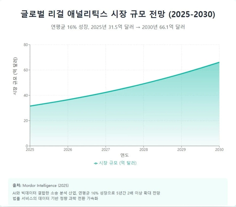 시장조사업체 '모르도르 인텔리전스'에 따르면 리걸 애널리틱스 시장 규모는 올해 31억 5000만 달러로 추정된다. 오는 2030년까지 연평균 16% 성장할 전망이다. 법률 분야 AI 소프트웨어 시장 역시 2025년 24억 2000만 달러 규모로 높은 성장률이 예상된다.