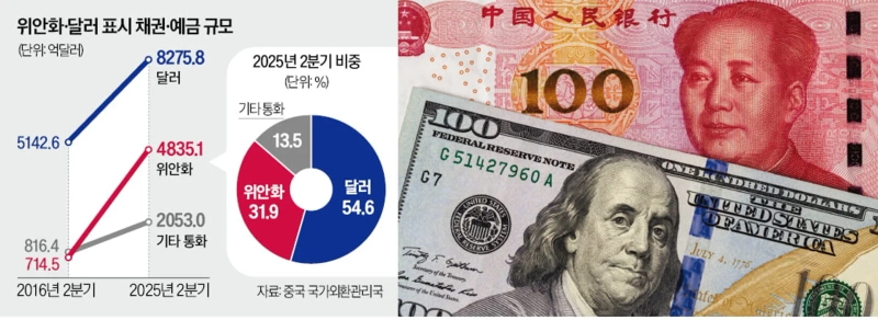해외 시장에서는 위안화 자산이 폭발적으로 늘고 있다. 중국 국가외환관리국(SAFE)에 따르면 중국 은행의 대외 채권·예금 규모는 지난 10년간 두 배 이상 늘어 1조5000억달러를 넘어섰다. 이 가운데 위안화 표시 자산은 올해 1분기 4838억달러로 최대치를 기록했다.