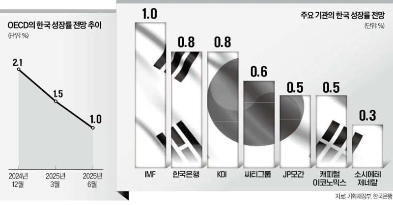 - OECDは今年の韓国の経済成長率見通しを1.0%に引き下げ、G20平均2.9%を大きく下回ったと伝えた。