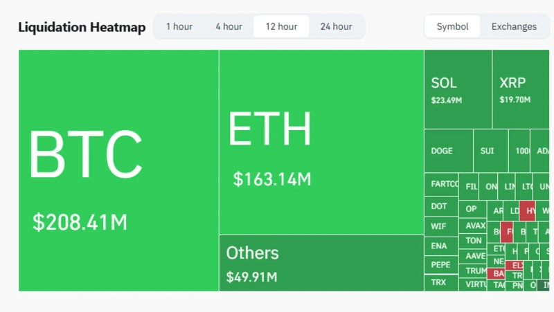 仮想資産ごとの清算規模を見ると、ビットコインが2億841万ドルで最も多く、続いてイーサリアム(ETH)、ソラナ(SOL)、エックスアールピー(XRP)などが続きました。
