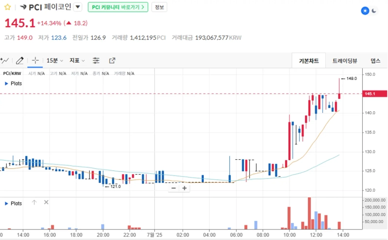1日(韓国時間)午後2時、ペイコインは国内の暗号資産取引所コインワンで前日比14.34%急騰した145.1ウォンで取引されています。ペイコインは取引中に最高149ウォンを記録したものの、現在は上昇の勢いがやや落ち着いている様子です。